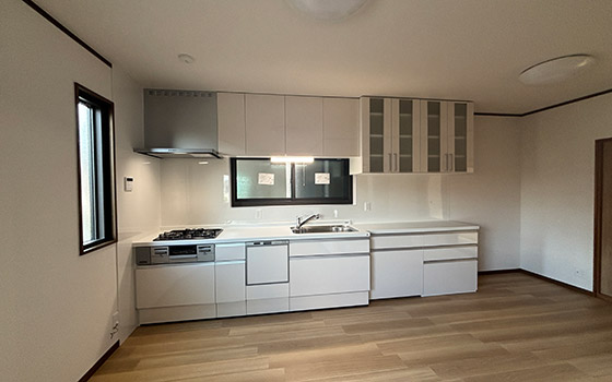| 靴箱新調・玄関タイル新調・洗面化粧台新調・UB新調・洗濯用カラン新調・洗濯板新調・システムキッチン新調 |